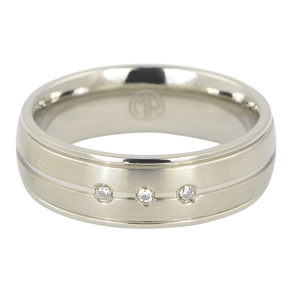 Sleek & Unique Titanium 7mm Mens Engagement Ring With Triple Stones