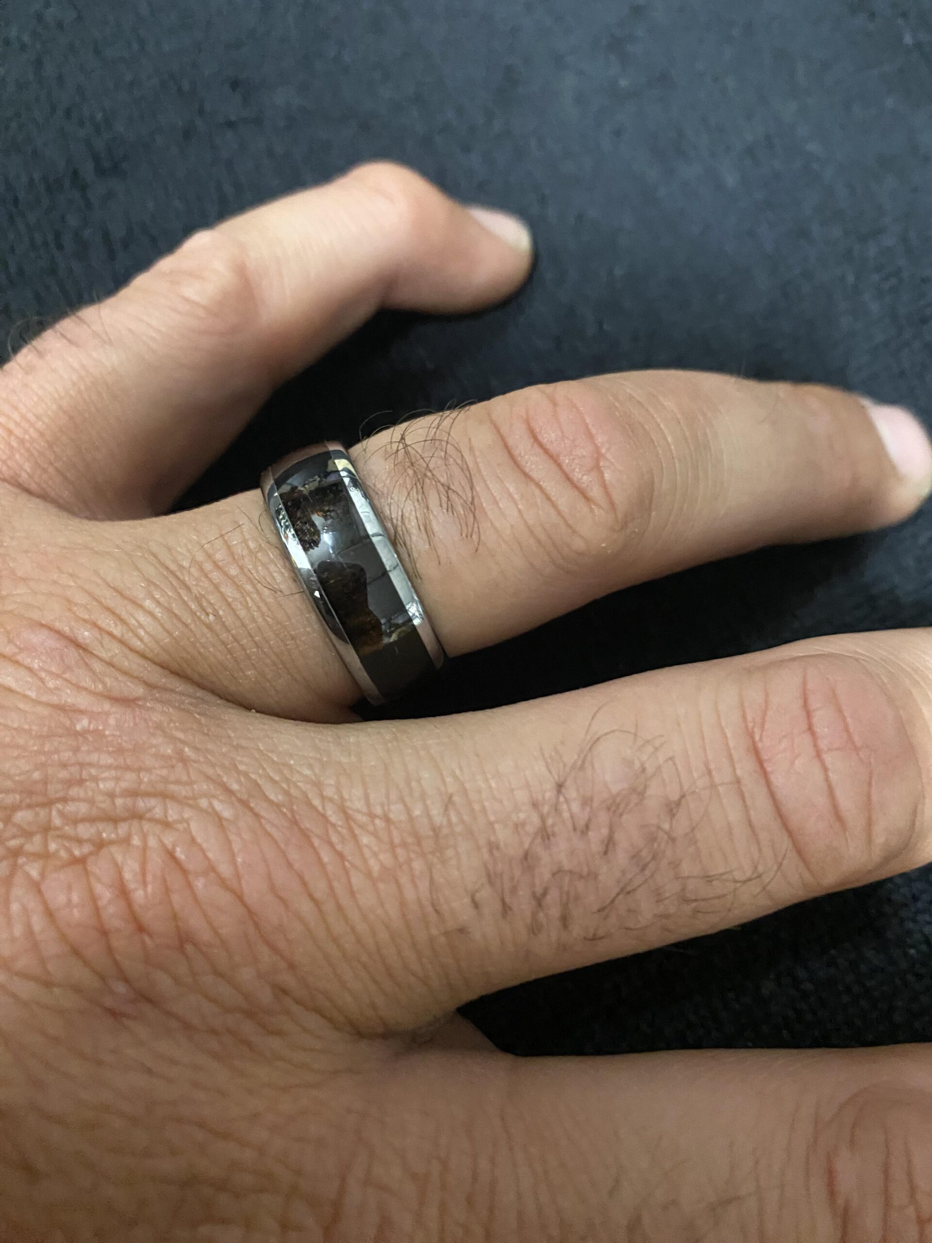 My wife bought this to replace my lost wedding ring. I am a classical guitarist and have an ebony fingerboard on my guitar. This ring is comfortable, light and looks great - and it’s always on display when I play.