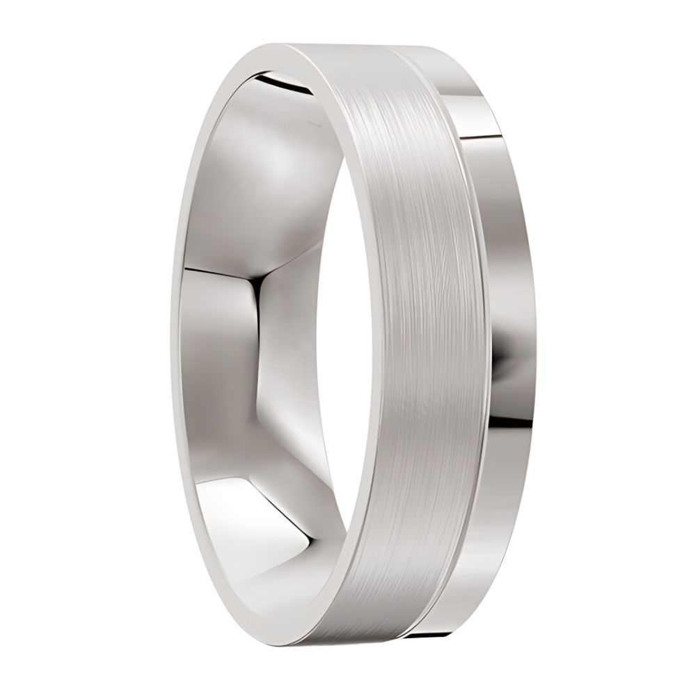 Satin White Gold Wedding Ring with Polished Edge